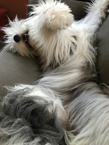 So, my attractive, orderly home is no more. An old quilt covers the couch. Dog bones and chewy toys are scattered here and there –– no matter how often I return them to their baskets. And sweeping floors has become a daily exercise, as my long hair, silver girl regularly tracks inside bits of bark from a stick she was chewing and pieces of leaves from when she was rolling in the grass. My self-centered life, when I only had me to take care of, has been totally upended, without warning, without my having adequate time to prepare. And I am finding that is not a bad thing at all.